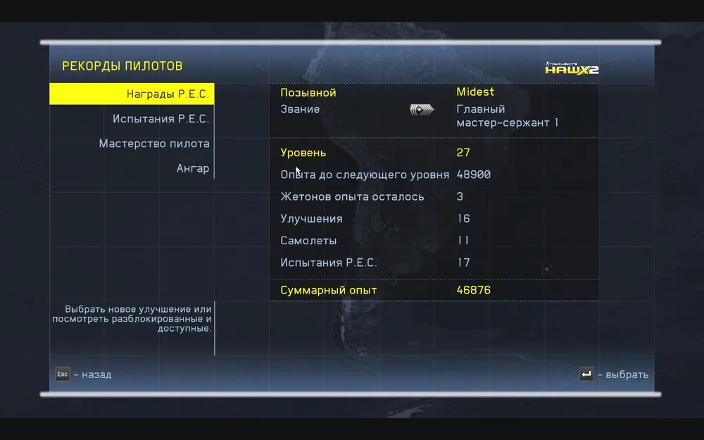 Что характерно, опыт мы получаем как в одиночной, так и в сетевой игре, что безусловно здорово. И получаем его не только за выполнение миссий и сбитых врагов, но и, как это нынче принято, выполняя испытания. Испытания разбиты на группы, их много, некоторые достаточно интересные.