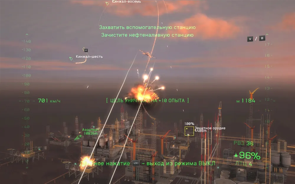 Кстати, я вот говорил, что разработчики забросили режим выключения полетных ограничений, но это не совсем так. Есть особый режим прохождения отдельных миссий — "аркадный". Так вот там ставятся трудные задачи. Например, нам позволят пользоваться на миссии одной лишь пушкой или будут как раз принудительно отключать полетные ограничения во время боестолкновений.