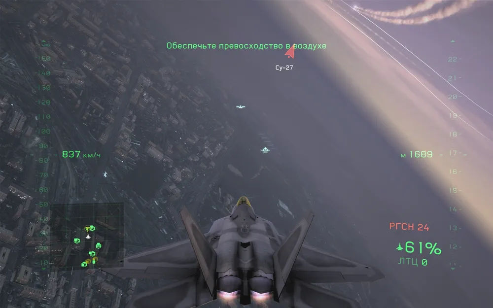 Противники просто обожают одновременно запускать в вас по нескольку ракет, так что довольно часто придется отвлекаться от сражения, чтобы увернуться от очередной пачки оных. Благо, наш самолет способен пережить гораздо больше попаданий, чем вражеские, да и ЛТЦ у нас есть.