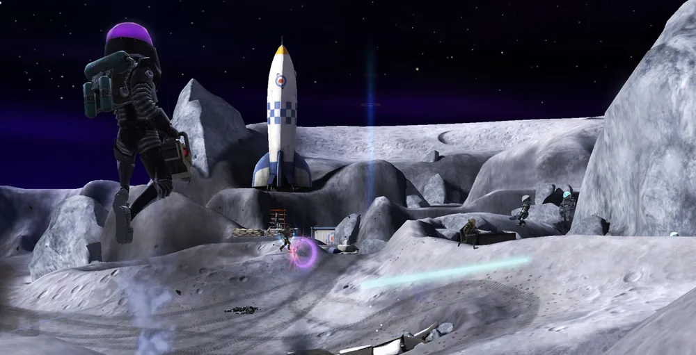 После бесчисленных часов испытаний и исследования, наши герои, наконец, стартовали к Луне в снова готовы продолжать войну в совершенно новой среде. При воздействии низкой тяжести и относительно нетронутого пейзаж, некуда спрятаться. Если ваш противник решил спрятаться за угол, вы не должны оббегать вокруг него ... Вы можете просто перепрыгнуть через что он спрятался