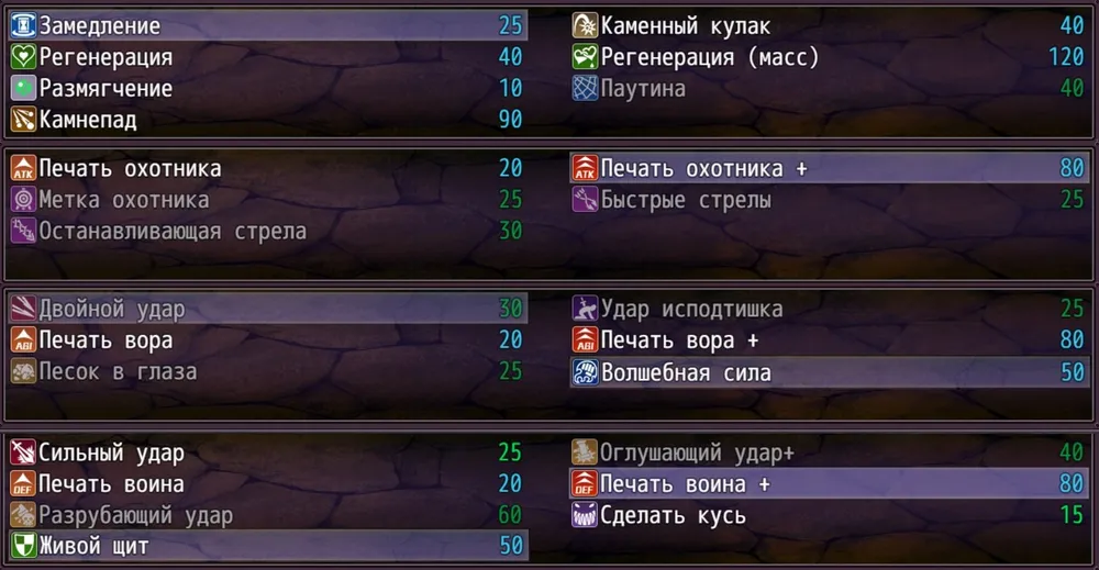 Охотник: «Печать охотника» увеличивает силу атаки; «Метка охотника» снижает защиту врага (нанесённая дважды – суммируется, против боссов!); о «Быстрых стрелах» я уже писал.