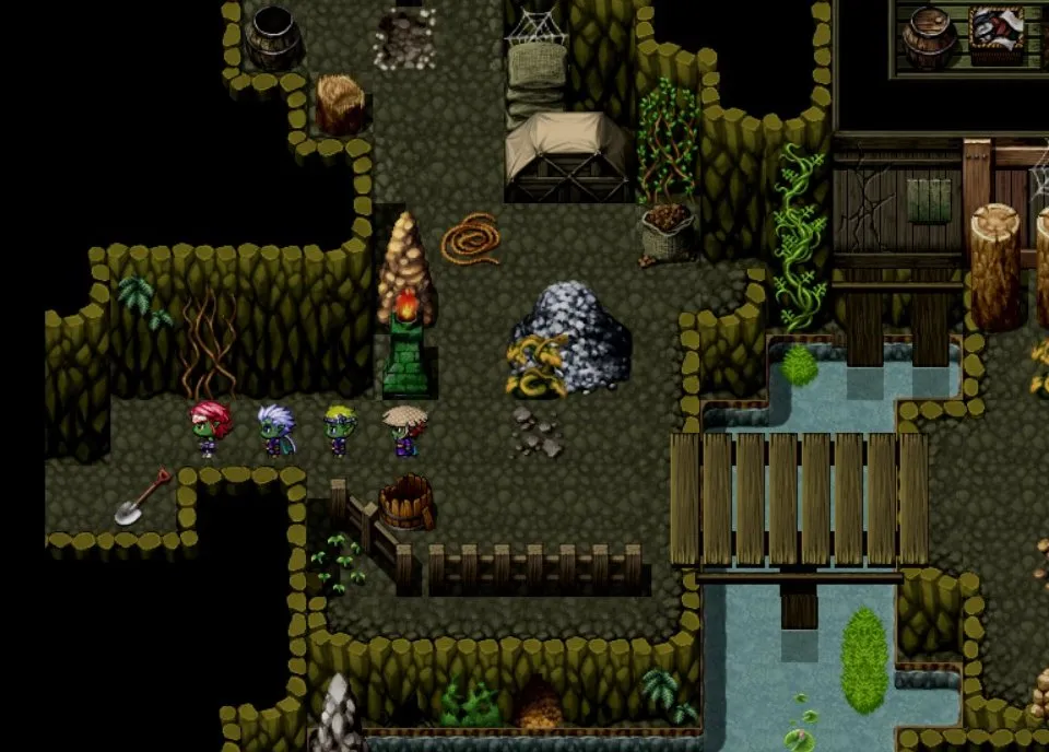 Уничтоженные монстры оставляют после своей гибели немного мяса; его можно приготовить в отдельной локации, вход слева от дома бабушки. Единственный способ восстановить пошатнувшееся здоровье в перерыве между боями, не возвращаясь в лагерь для сна – поесть варёного мяса. Однако при каждом посещении кухни обжора Груня непременно съест три кусочка из первой порции, даже при полном здоровье! (Лично меня крайне раздражает данная «фишка», хотя бы потому, что полученный в результате обжорства бонус силы просто смешон, да вдобавок исчезает прежде, чем отряд доберётся до врагов.) Поэтому имеет смысл посещать кухню, когда накопится хотя бы пара десятков кусочков мяса – чтобы уменьшить потери.
