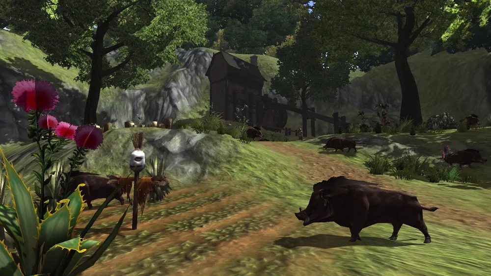 На следующий день, более-менее отойдя от вчерашнего празднования победы над сурикатами, я отправился к местному охотнику. На выходе из трактира меня приветствовали криками «Гроза сурикатов!» или что-то вроде того. Не совсем героическое прозвище, но на первое время сойдет. Охотник Ингри оказался человеком более практичным, чем староста. Сразу попросил выполнить за него свою работу! Впрочем, охота на легендарного одноглазого кабана – это не за сурикатами по полям бегать. Быть может, скоро я стану «Грозой кабанов»?