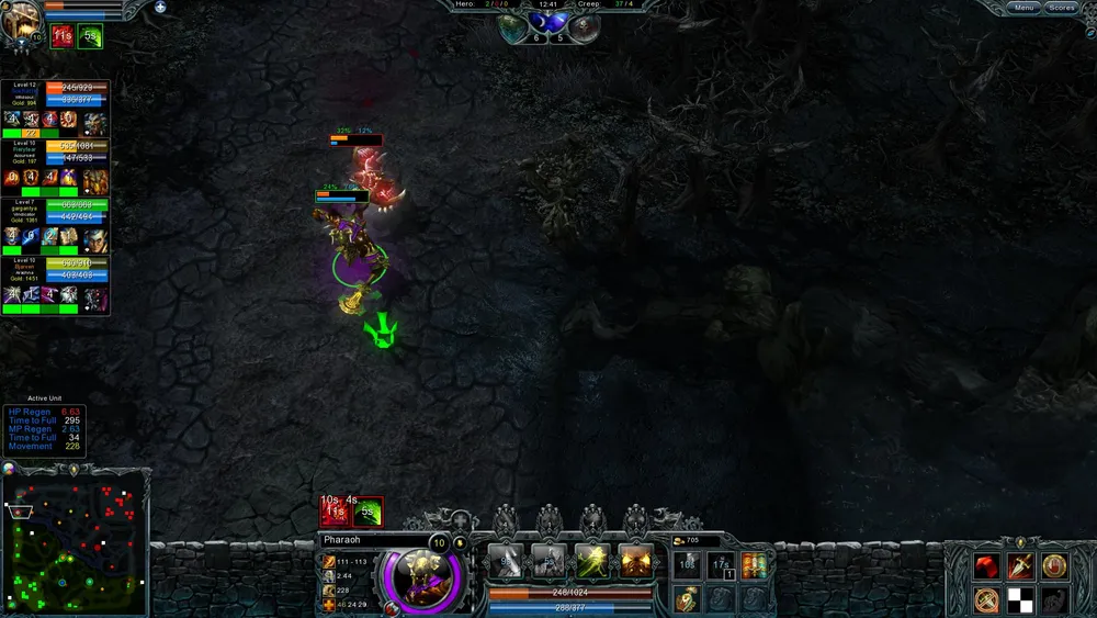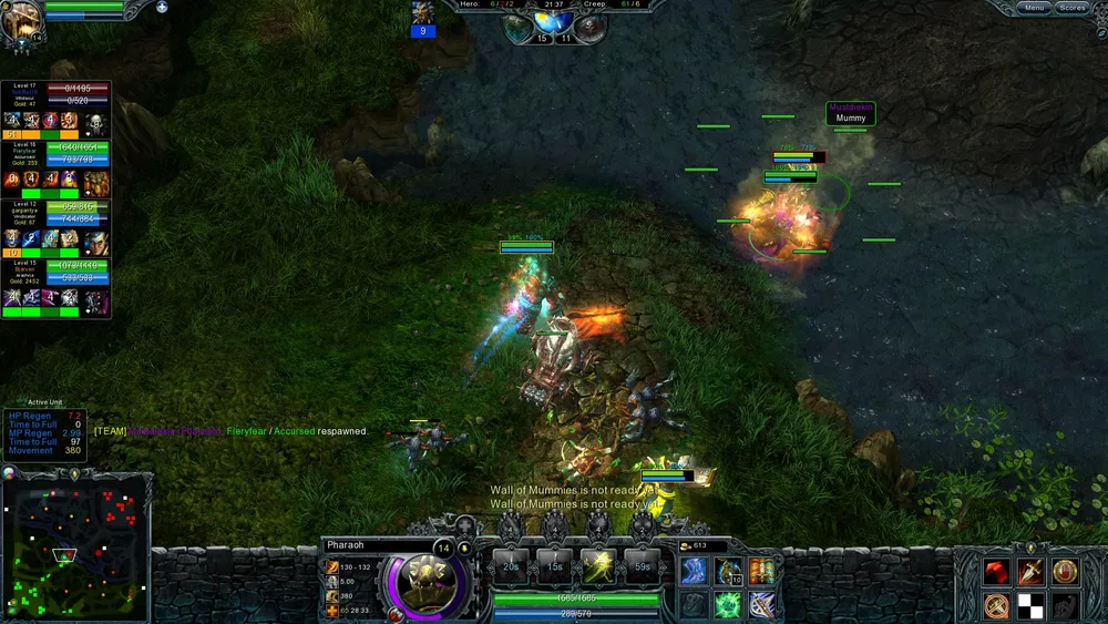 Пробный шар у нас уже был, поэтому сегодня просто второй герой — Фараон (Pharaoh). Этот весьма не кавайный товарищ — практически полная копия Clockwerk Goblin из DotA. Однако сейчас уже у HoN наметился собственный путь. Предметы часто меняются, появляются новые… Однако это слабое отношение имеет к тому факту, что многие, даже нет, очень многие игроки вообще не представляют, что делать. Если с Армадоном все хотя бы приблизительно понятно — он чистый танк, то с Фараоном дело обстоит сложнее. У него нет защищающих навыков, но при этом он относительно тщедушен, имеет маловато маны, не обладает мощными заклинаниями нюкеров. Да и с руки бьет, прямо скажем, слабовато — ни о каком сравнении с кэрри (от слова carry — термин означает героя, который в состоянии дотащить команду до победы) вообще речь не идет. Не удивительно, что в погоне за хоть каким-нибудь уроном и регенерацией маны (которой маловато) легко собрать что-то совсем не радующее… и запороть этим игру.