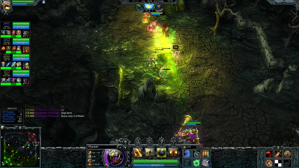 Проблемы с полезностью были еще у прообраза Фараона — Гоблина из DotA. У него, по сути, все те же недостатки – слабый удар, низкая скорость атаки, неочевидные умения. Стоит прозевать начальный этап – мы уже не можем причинить вреда никому и часто умираем. Все дело в том, что Clockwerk очень зависит от того, насколько вовремя и правильно вы примените его навыки. На среднем этапе к этому добавляется еще и значение артефактов. И хоть последние в HoN постепенно, но верно уходят по своему пути, но важность правильного стиля игры перешла из DotA полностью.