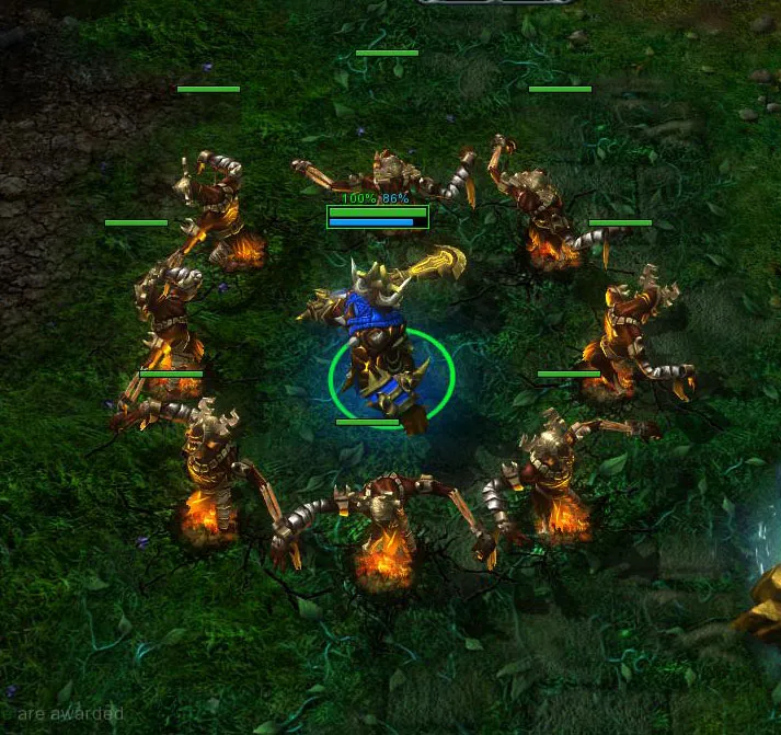 Однако тут кроется загвоздка — цели-то бьем случайные. Иными словами, применять это умение нужно только в том случае, если рядом нет нейтральных или просто линейных существ. Иначе всполохи будут наносить урон им, а не нашему несчастному врагу. Пользоваться навыком надо так — подбираемся к противнику поближе, пытаемся зайти за него, опередить его, подгадать маршрут отступления (это если не имеем сапога), включаем умение и стараемся держаться поближе (самый шик — тормозить собой). Микрооглушения будут останавливать цель, давая нам возможность бить ее обычной атакой. В принципе, уже на пятом уровне Фараон — опасен. Его умение способно нанести более 600 очков урона, а у магов и разных ловкачей как раз примерно столько и будет.