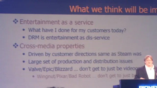 «В Valve много говорит про развлечение как сервис», сказал Ньюэлл. «Это подход, при котором ты спрашиваешь: что я сделал для своих клиентов сегодня?»
