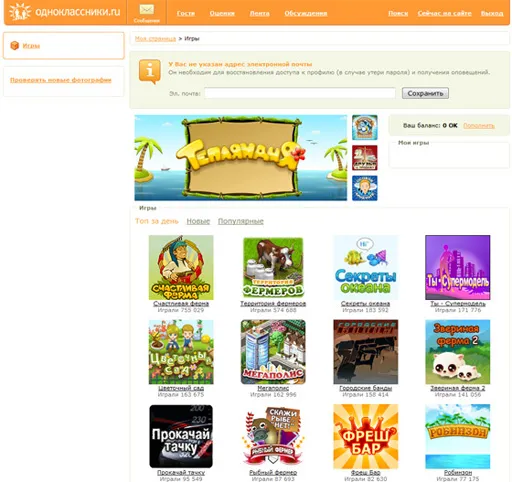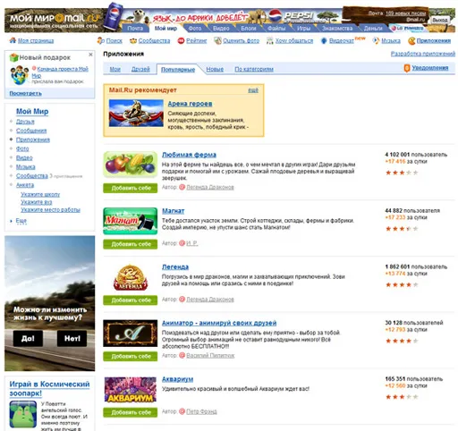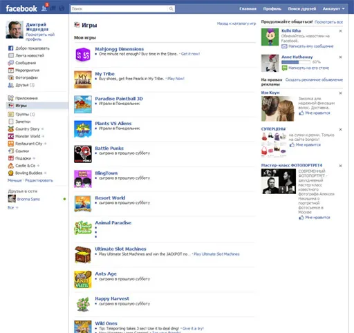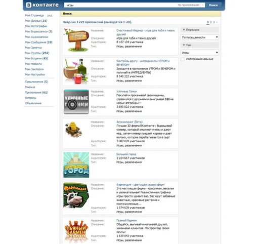 Крупные и наиболее известные сайты, где расположены социальные игры: