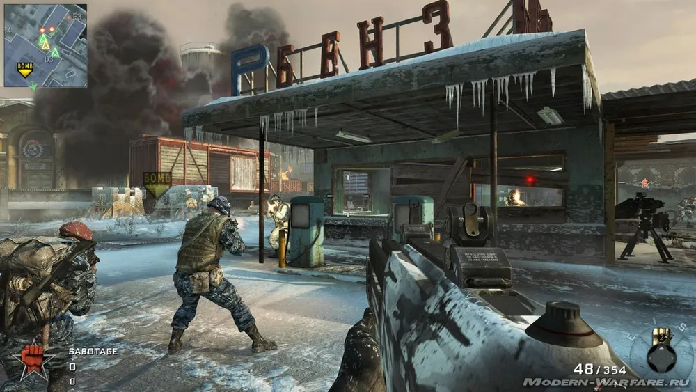 Пожалуй, самым главным плюсом, который также получается главным минусом, является наличие множества предметов, за которыми можно укрыться. Поэтому первое правило: всегда хорошенько осмотрись, прежде чем делать перебежку, а то при встрече с врагом можно оказаться очень уязвимым. Также на карте полно брошенного транспорта, так что можно взрывать его, для того чтобы поджарить врага, который за ним спрятался.