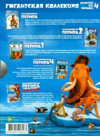 В самой коробке находится "книжка" с пятью дисками. На четырех из них сами мультфильмы, а на пятом - короткометражное дополнение "Ледниковый период. Гигантское Рождество", выпущенное в 2011 году.