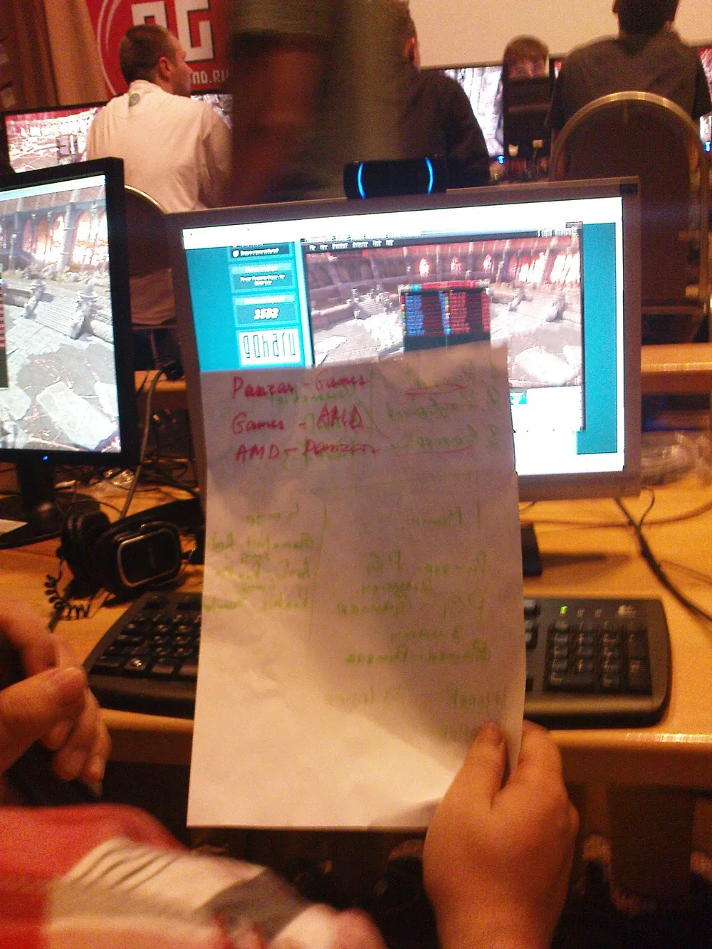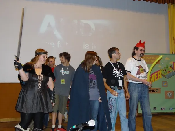 ПАДЪЁЙООООООМ!, - не менее нежно чем обычно пронеслось за дверями. Как-то внезапно в мою жизнь снова ворвалось утро. Проклиная короткие 24-часовые сутки я побрёл завтракать, а затем на очередные мастер-классы. Тут, опять же, удалось побыть на двух мастер-классах, урвать билеты на игромир, а также поиграть в ведьмака на ноутбуках AMD на призы от них же. То что я в ведьмака не особо то и играл, да ещё и торопился привело к внезапной моей смерти на середине сценария, потому я остался без призов. Игрок на первом ноутбуке явно был в ведьмаке попроворнее, потому даже если бы я не умер, то не успел бы завершить задание раньше его. Поздравив победителя я отправился бродить с соклановцами вокруг играющих в Guitar Hero в ожидании турнира по Panzar.