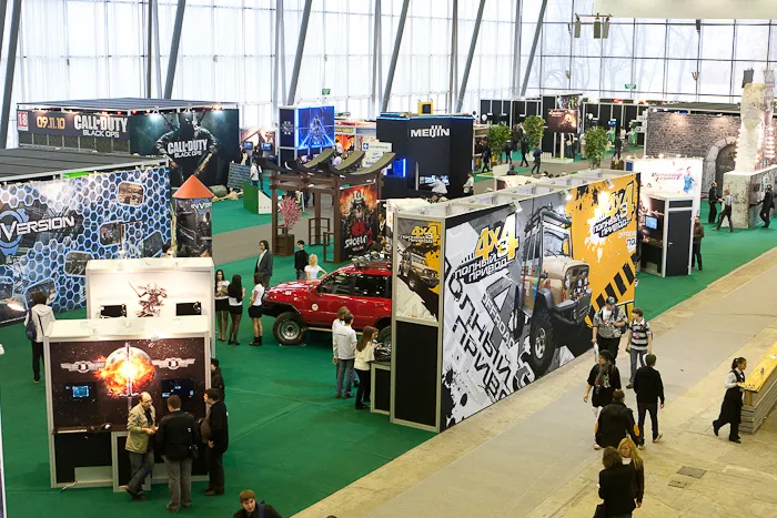 Крайне неприятный сюрприз настоящим геймерам преподнесла компания 1С, устроив очередной «игровой маршрут»: поиграй в десять игр, получи печати и прими участие в розыгрыше призов. В результате к игровым местам выстроились очереди из людей, которым были интересны не игры, а печати; и пробиться через эту толпу не было никакой возможности. Поясню на примере «King's Bounty: Воин Севера»: очередь человек в тридцать, на их «игру» - без слёз не взглянешь. Люди понятия не имели, как управлять бойцами; в пух и прах проигрывали первое же сражение, зато по прошествии пяти минут получали желанную печать. И как обычно — чудовищной интенсивности музыка. По крайней мере, у отдельных стендов. Возможно, компании старались таким способом привлечь побольше посетителей, но достигали как раз обратного эффекта.