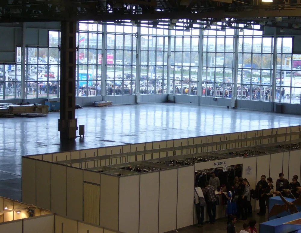 Половина павильона на ВВЦ. Меньше Крокуса по площади, но порядка было больше.