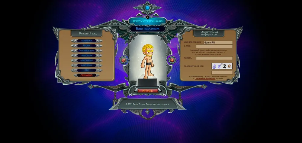 После регистрации в "Гневе Богов" начинается короткое, но информативное обучение, которое быстро поможет разобраться в интерфейсе игры. Игровой процесс в принципе классический для игр в жанре онлайн, на Арене можно оценить в боях либо выбрав оппонента из списка, в этом случае это будет такой-же игрок как вы. В таком бою в случае победы вы получаете опыт необходимый вам для прокачки характеристик персонажа, кстати, такой бой бесплатен.