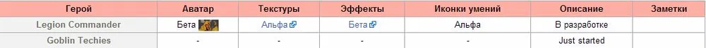 Сразу после выхода Abaddon'a в графе "Состояние невыпущенных героев" на официальной базе знаний Dota 2 - dota2.gamepedia.com появилась информация о том, что Valve начали работу над самым ожидаемым в паблике героем - Goblin Techies.