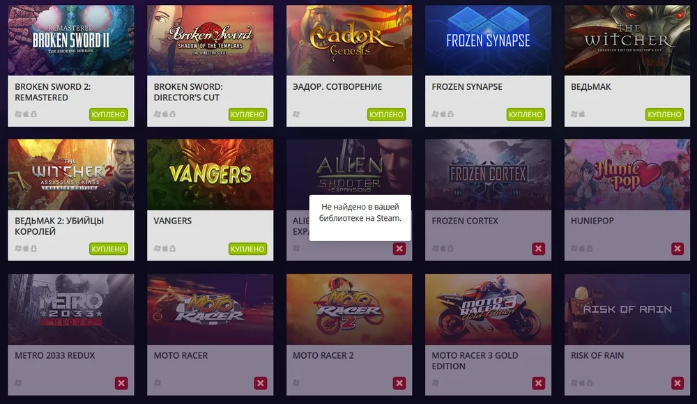 16. После подключения аккаунтов я купил на Steam игру из списка, но это не отображается здесь на странице. Почему? ►