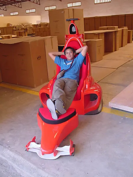 Поклонникам «Формулы 1», а также любителям поиграть в консольные игры, сидя в удобном кресле, посвящается. Дизайнер Артур Рейс-младший (Arthur Q. Reyes, Jr.) разработал концепт кресла, которое выглядит так, как будто его только что вытащили из формульного болида. Причем принадлежность к определенной марке не вызывает сомнений – логотипы с гарцующим жеребцом красноречивее любых слов.