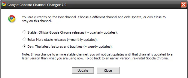 2. Запустить его и выбрать Dev. Это будет ветка 4.x которую требуют почти все адоны.