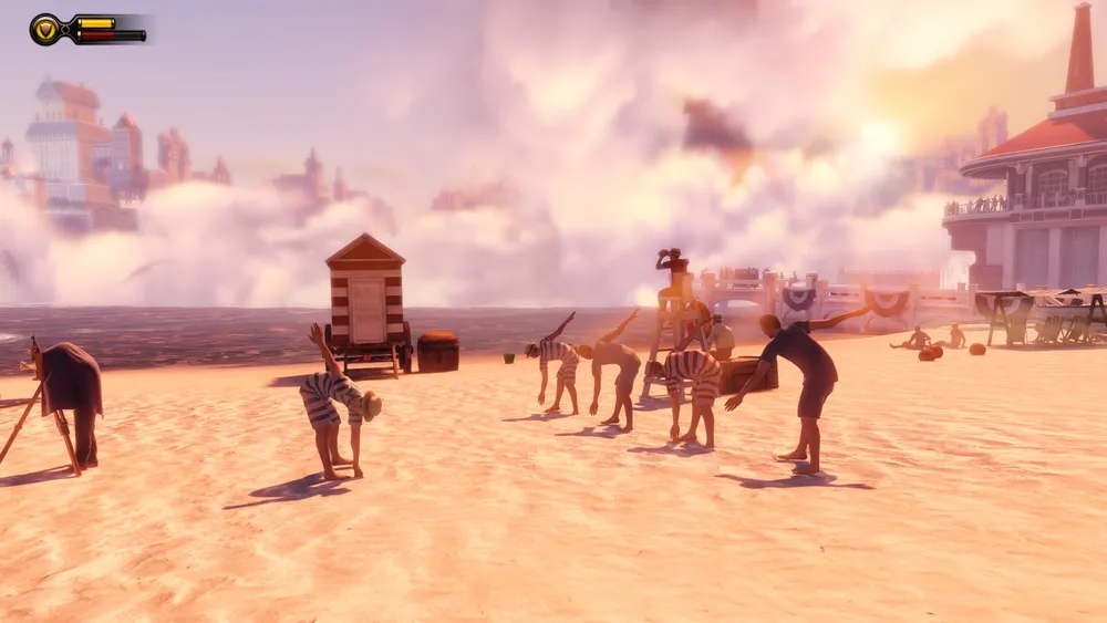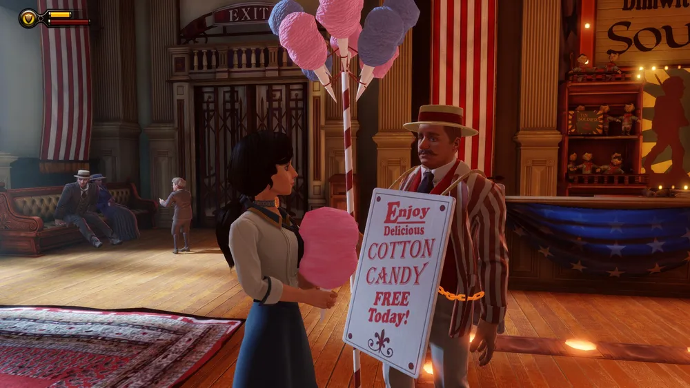 За всей этой радужной обстановкой становиться понятна одна очевидная вещь – прежняя атмосфера Биошока безвозвратно утеряна. В Рапчуре не на секунду нельзя было расслабляться, ведь за каждым углом мог поджидать какой-нибудь психопат, а из каждой тени на вас могло выскочить существо похуже какого-то психопата. Теперь же все намного позитивнее, что совсем не хорошо. Прогуливаясь по «карамельной» Колумбии, чувствуешь себя донельзя вольготно, так что про чувство постоянного напряжения, что сопровождало нас в прошлых частях, можно сразу забыть.