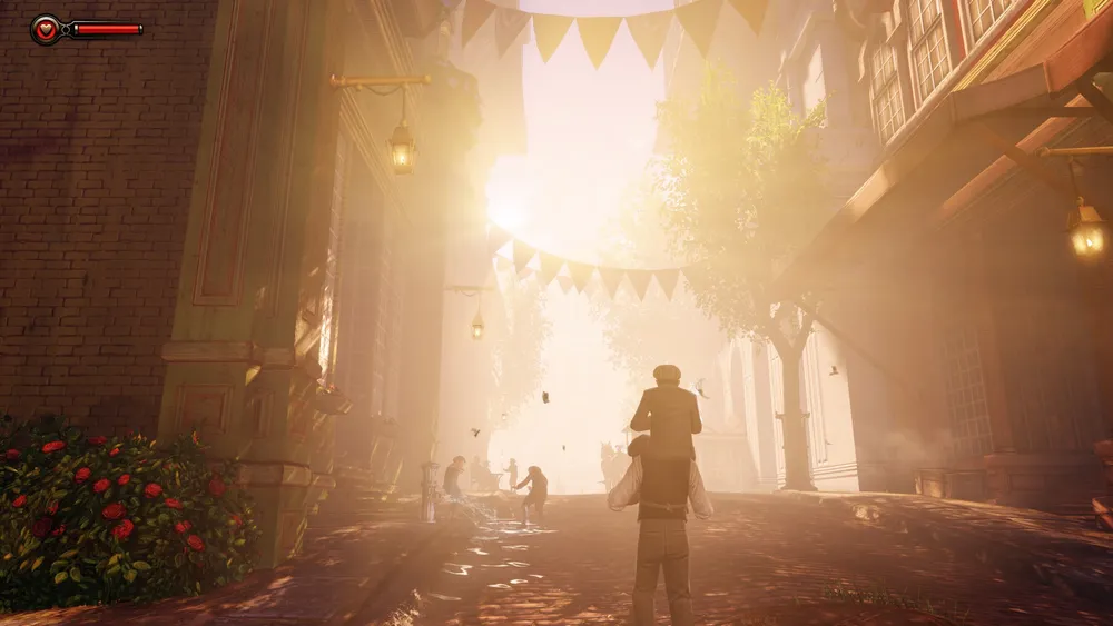 Хороший непростой сюжетец был и в прошлых Биошоках, а вот летающий городок – это уже что-то новенькое. И, честное слово, своими пейзажами Колумбия затыкает Рапчур за пояс: залитые солнечным светом милые домики; искренне счастливые люди, занимающиеся своими повседневными занятиями; яркие фейерверки, озаряющие небесные высоты даже днем – все это вы найдете в Колумбии.