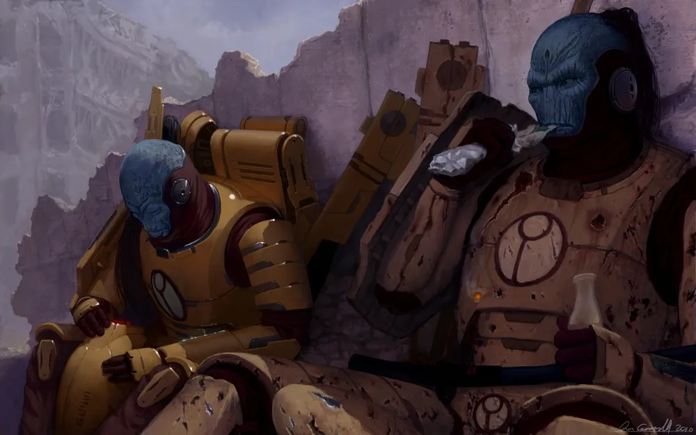 Сотни воинов тау погибли под штыками и цепными мечами имперских гвардейцев, но, в конце концов, у тех не было ни шанса. Возглавив свою свиту на передовой, командующий Сверкающий Меч взмыл в небо и опустошительным залпом уничтожил Тощенко и всякую надежду имперцев на победу.