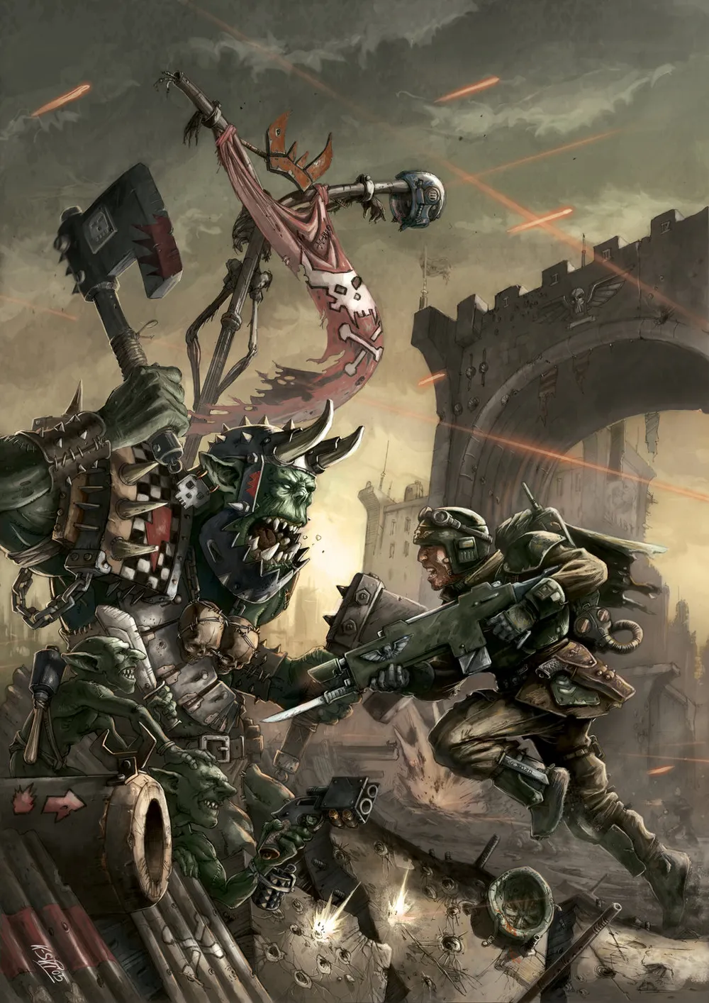 Орочий вождь Газгкулл Трака — считающийся самым опасным орочьим вождём в имперской истории — вторгся на промышленную планету Армагеддон во главе огромной оркды.