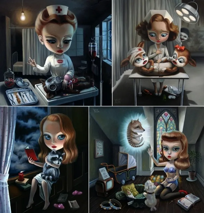 В её странном сюрреалистичном творчестве, наверно смешались няшность детского представления, и бывшие страхи и ожидания ребенка, и может жестокость взрослого представления мира. Она открывает тайный мир кукол, которые занимаются своими делами в отсутствии хозяев или может забытые подросшими детьми, которые нашли себе другие игрушки. Этот готичный мир не совсем добр к своим обитателям. Что-то есть в нем из фильма по книге, или даже из самой книги "Санта-Хрякус" Терри Пратчетта. Темная сторона мира кукол или может нашего мира.