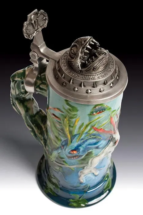 Эпическая коллекция утвари Taverncraft World of Warcraft пополнилась еще одним экспонатом – она представляет собой ни что иное, как самое культовое существо Азерота – мурлока. Новая кружка из искусственного камня, украшенная соответствующей надписью «RAWGRLRLRLRRLGLRL!!!», демонстрирует агрессивное племя мурлоков - Winterfin Oracle, Bluefin Murloc и Murloc Tidehunter, распевающих «Death will rise from the tide. I am Murloc!» и увенчана эксклюзивной оловянной крышкой в виде разинутой пасти мурлока. Поставки чудо-кружки за $89.99 ожидаются уже в августе этого года, предзаказ можно оформить на сайте производителя.