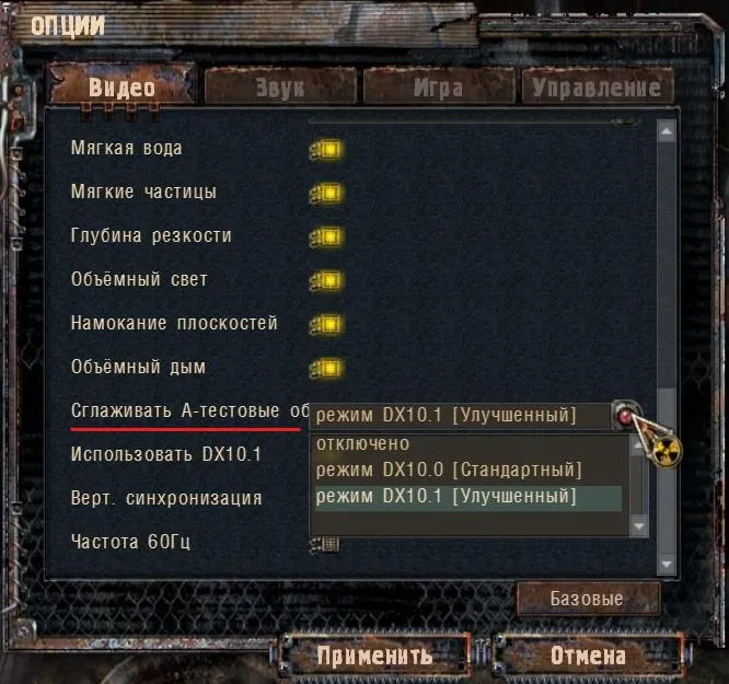 Несмотря на то, что расширенные настройки графики содержат немало различных опций, некоторые эффекты можно включиить лишь путем редактирования конфигурационного файла игры (user.ltx), либо прописав соответствующие команды в консоли (~). Именно к таким опциям относится сглаживание прозрачных текстур (альфа-сглаживание). Кстати, в Чистом небе оно включалось из меню игры: