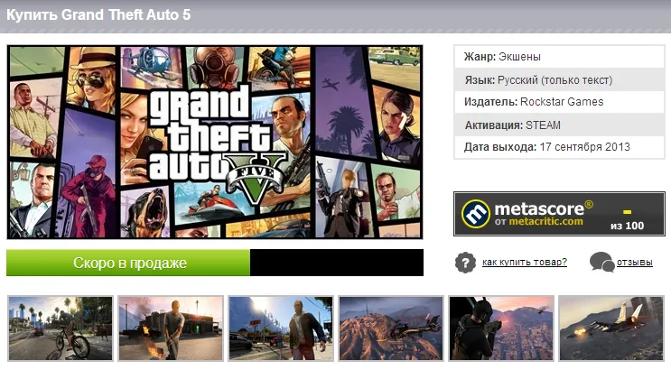 Rockstar официально сообщили, что дата выхода GTA 5 - 17 сентября 2013 года. Речь идет о версиях для Xbox 360 и PlayStation 3. GTA 5 дата выхода на PC всё ещё не известна, но у нас можно будет купить ключ GTA V и оформить предзаказ игры и в день официального релиза в России получить лицензионный ключ на email.