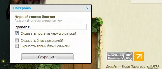 Установить скрипт «Скрытие постов из черного списка блогов»