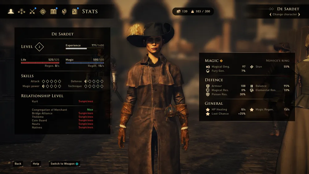 Боевая ориентация существует в классических вариантах - "файтер, маг и вор"(клирика только не хватает). Игра выдаёт при выборе подсказки, какому классу что желательно прокачивать (по две штуки на класс) - прекрасно для новичков, впервые взявшихся за РПГ, да и для опытных игроков будет не лишним. Для мага (почти всегда играю, если можно, магом, женщиной и эльфийкой, ну это к слову - тут только человеческие варианты) рекомендуются к прокачке харизма и сила воли. Харизма, стандартно, повязана с убеждением, поэтому создаётся впечатление, что игра чутка подыгрывает магу - при игре за дипломата убалтывать, убеждать и запугивать кого-то нам придётся, скорее всего, часто.