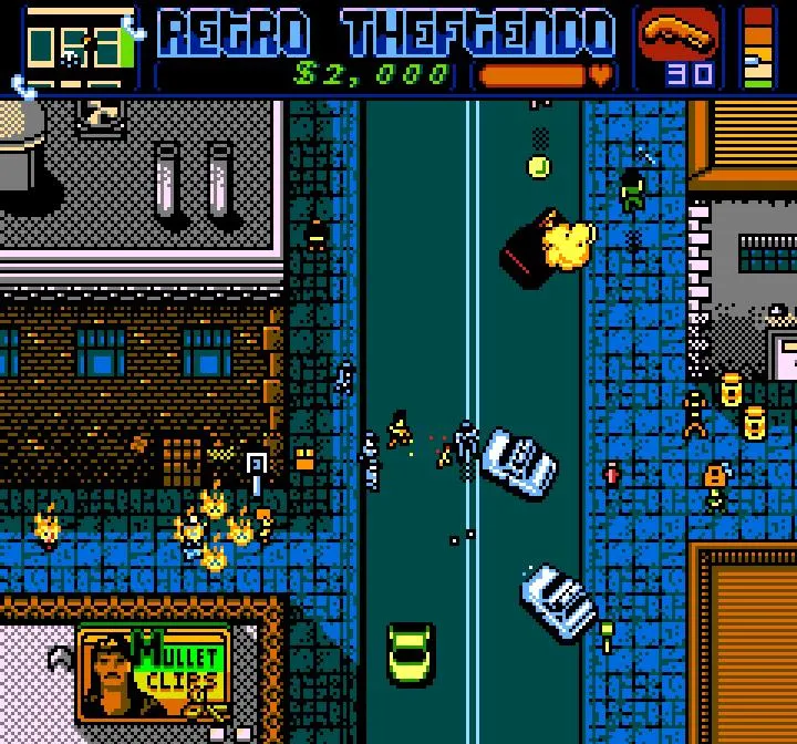 Маялся херней Пропадал недавно на сайте IGF и выяснил, что некий товарищ Brian Provinciano уже около восьми лет разрабатывает демейк GTA 3 для Nintendo Entertainment System. За все время существования проект успел сменить три названия: поговаривают были проблемы с Rockstar Games. Так что анонсированный в далеком 2005ом Grand Theftendo, до недавнего времени именовавшийся Retro Theftendo, все таки выйдет под вывеской Retro City Rampage.