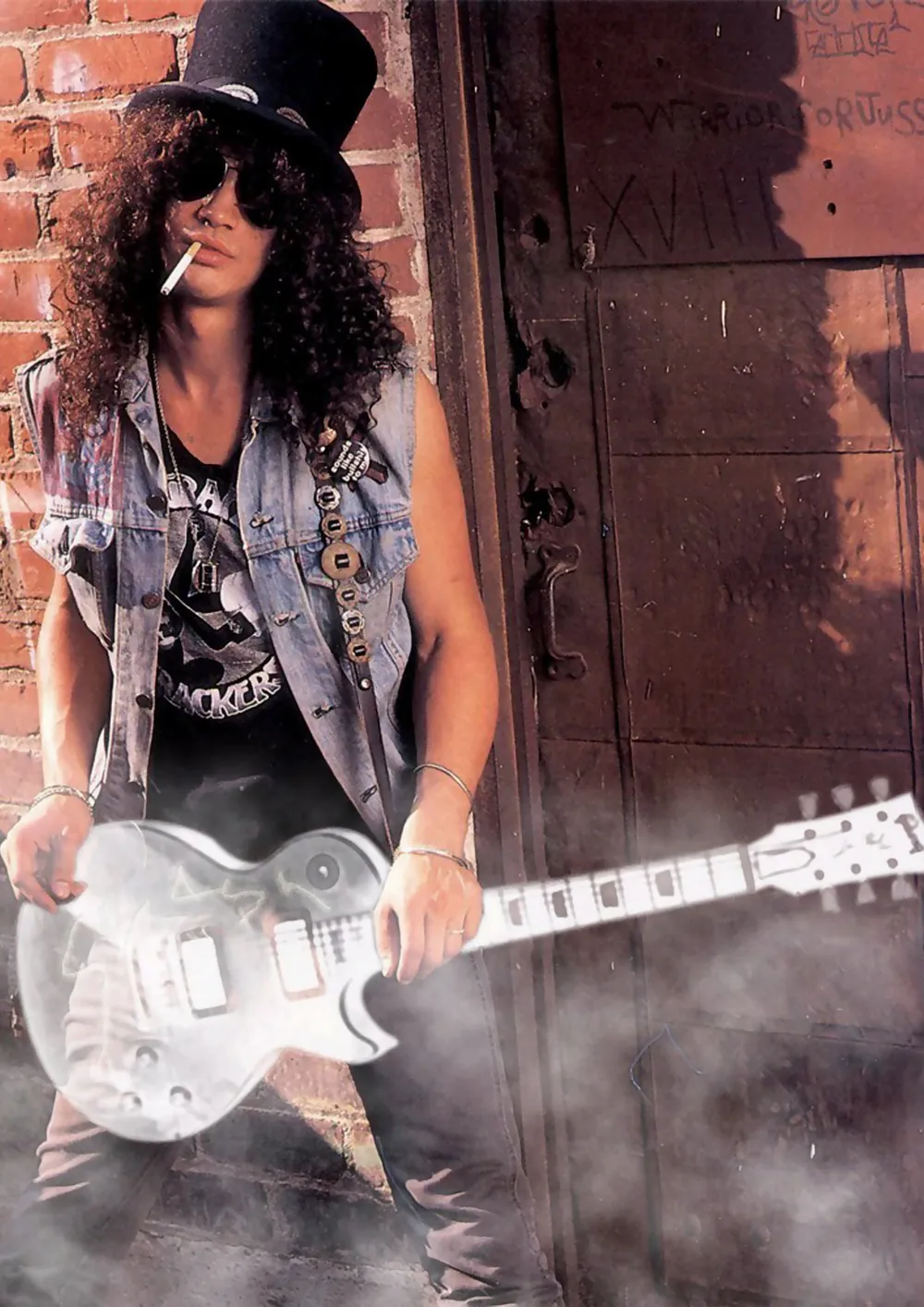гитарист - Slash (он же Сол Хадсон (Saul Hudson), родился в Англии в 1965 году),