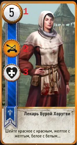 Войска бывают трех типов - рукопашные, дальнобойные и осадные (2). У каждой карты есть свой показатель силы (1). Также многие карты обладают дополнительными способностями (3).