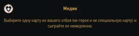- Выберите одну карту из вашего отбоя (кладбища) (не героя и не специальную карту) и сыграйте её немедленно
