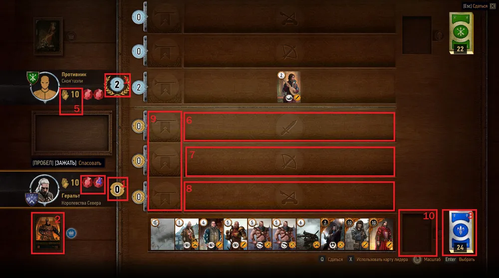 4. Карта лидера. При нажатии на неё можно поменять карту лидера на другую, если она открыта.