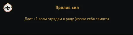 - Даёт +1 силы всем отрядам в ряду (кроме себя самого)