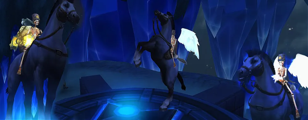 на фото: бесплотный костюм, шапка политрука, белые крылья, хадаганский скакун.