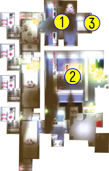 1 – начало миссии. 2 – лаборатория. 3 – переход в убежище.