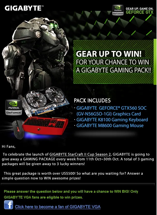 Все , что просит Gigabyte - это зайти на их страницу в facebook, подписаться на их страницу и ответить на вопрос этой недели. При этом вопрос вообще просто.