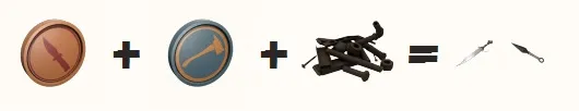 О да, я очень ленивый, чтобы снова писать рецепт стандартного крафта оружия в определённом слоте. Могу сказать только одно. Кунай сделать проще всего. В Мили слоте Шпиона две вещи. Так что у Куная 50% шанс выпада. Удачи с Крафтом.