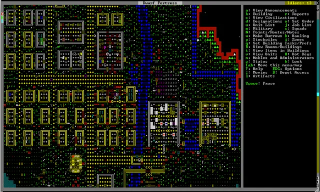 Разработчики Dwarf Fortress с самого начала отказались от графики, чтобы сосредоточить все силы на разработку самого процесса игры. И только сейчас, когда геймплей уже хорошо проработан, собираются делать нормальный интерфейс.