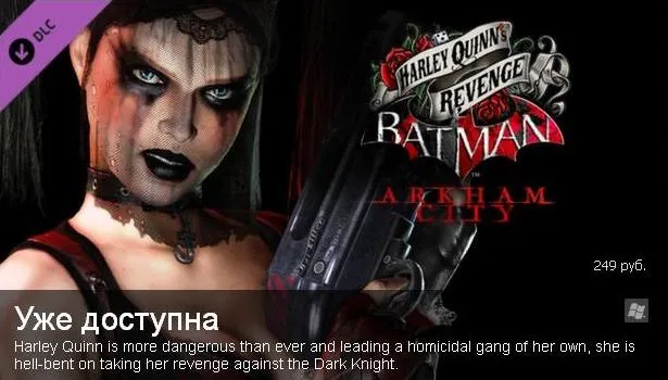 Сегодня состоялся релиз загружаемого дополнения Harley Quinn's Revenge для игры Batman: Arkham City в сервисе Steam. Стоимость дополнения составляет 249 руб.