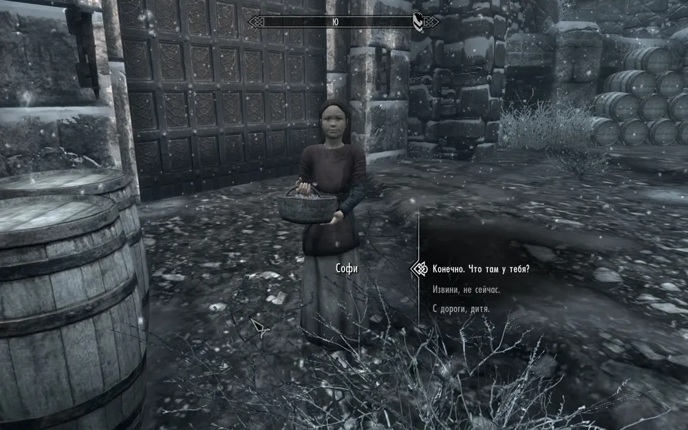 - Если вы усыновили Софи перед захватом Виндхельма для имперцев, то после захвата она может исчезнуть из вашего дома. В этом случае вам нужно в разговоре с другим ребенком или супругом выбрать опцию «давай переедем в другой дом». После переезда Софи должна появиться на новом месте.