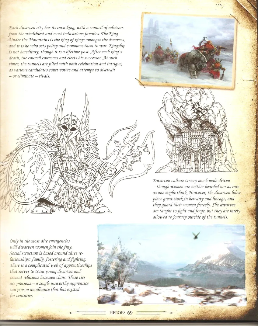 - Оливер Ледруат (Olivier Ledroit). Разработал основной стиль. Лесные эльфы, к примеру - не только кельтские мотивы, но ещё и северо-американско-индейские. Тёмные Эльфы - Итальянский Ренессанс.