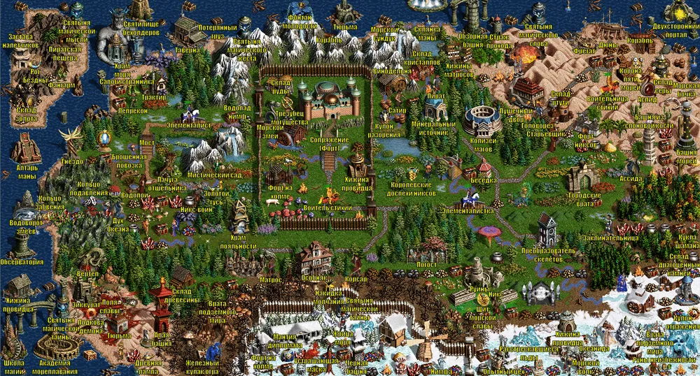 • на картах без воды все морские элементы исключены полностью (в том числе навык Навигация, а герои-специалисты по этому навыку заменены);