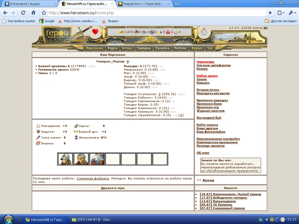 Многим известна великолепная игра под названием "Герои войны и денег" , но мало кто о ней знает подробности. Игра вышла в Марте 2007 года. Она совершенно бесплатна , но в игре так же присутствует данат (введение в игру реальных денег). В данный момент в ней играют около 12 тысяч человек во всем мире. Эта игра для людей разных возрастов , в неё могут играть и маленькие и взрослые дауны. Сам в неё играю, с самого её открытия , но всегда за разных персонажей , не люблю лейт и из за этого начинаю всё время новыми персами , как правило довожу одного до 7го уровня , потом регистрирую нового и играю) Данатил - был грешок,но играя - за рыцаря это святое. Данат на ранних стадиях игры нужен только 1й расе - Некромантам ,т.к. они имею большое кол-во скелетов лучников , даже на 3ем уровне. На 4 уровне , расы сильнее некромантов не существует , в этом я вас могу заверить.