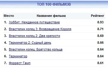 топ 100 фильмов свидетельствует о том, что «Хоббит: Нежданное путешествие» обошел своего прародителя, коим является «Властелин колец.»