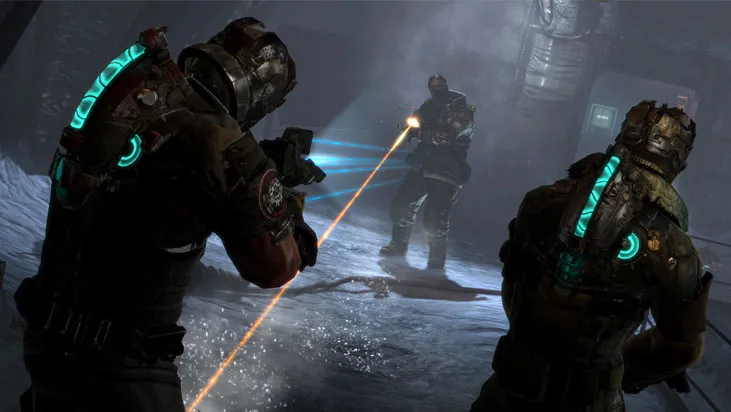 Меж делом, в полку "хороших парней" прибыло. Компанию Айзеку Кларку составят бывалый солдат Джон Карвер и наша старая знакомая Элли Лэнгфорд. Появление новых персонажей не случайно: основной фишкой Dead Space 3 станет совместный режим прохождения, пришедший на смену весьма унылому мультиплееру второй части. По сюжету Кларк, Карвер и Элли отправляются на упомянутую выше планету, дабы найти некую персону, чья личность и важность до сих пор хранится в секрете, и доставить её на Марс. Но всё, как обычно, идёт не по плану. Вдобавок ко всему, Айзек очень кстати окончательно слетает с катушек. После не самой мягкой высадки на поверхность нам предстоит не только выжить в этом ледяном аду, но и вернуться домой. Всячески докучать нам будут всё те же некроморфы, которые времени зря не теряли и эволюционировали, стали выносливее, быстрее, сильнее. Появились, конечно же, новые разновидности врагов: так, например, Fodders настолько живучи, что даже после смерти доставят массу неприятностей игроку — их отстреленные конечности оживут и попробуют разобрать нас на куски.